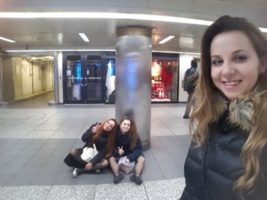 Lekéstük a vonatot, így a lányok kicsit megpihentek a New yorki vasútállomáson (fura, de itt nincs egyetlen pad/ülőhely sem)