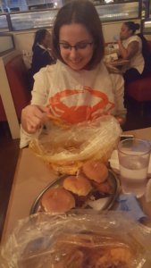 Szintén nálunk is kapható, mégsem próbáltam még soha a garnélarákot és az osztrigát. Most bizony ezekhez is volt szerencsém ráadásul egy különleges étteremben, ahol a pincér a nyakadba köt egy előkét, gumikesztyűt hoz neked és csak ezután szolgálja fel a finomságokat. Ennek egyszerű oka, hogy a garnélarákot “kézzel-lábbal” kell bontogatni, ami nem éppen ruhabarát folyamat, hacsak nincs rajtad előke. Egyébként az étterembe bemenet tipikusan filmes volt minden: a bejáratnál állt egy hölgy, étlapokkal a kezében, nekünk pedig mondani kellett, hogy asztalt szeretnénk 2 főre, majd elkísért minket az asztalhoz és átadta az étlapokat. Nagyon előkelőnek és különlegesen éreztem magam már csupán ennyi előzékenységtől is. 🙂